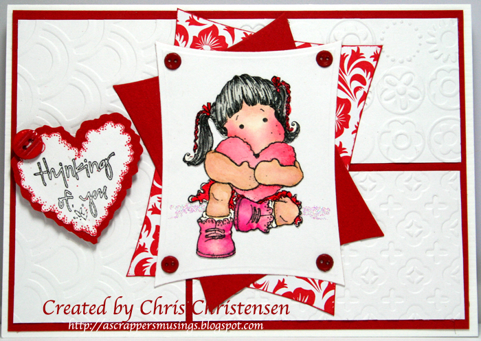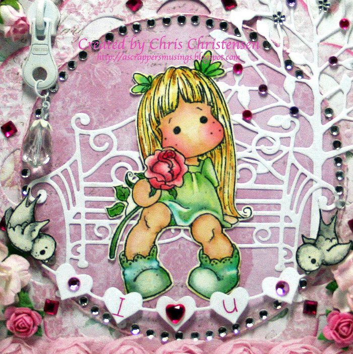 I have a fun card to share with you today. It features Magnolia's Goblin, Sitting Martha. You can find the whole set of Goblins at Magnolia-licious. I think she is just the cutest! If you look at her left foot, you can see her little green toe sticking out from the hole in her sock. I even painted her little toenail red! I wish I could be more consistent with my coloring of hair. I love how Martha's hair turned out on this card. Hair is just hit or miss with me. As they say, "Practice makes perfect!" Hopefully, I will eventually get some consistency. Here she is: